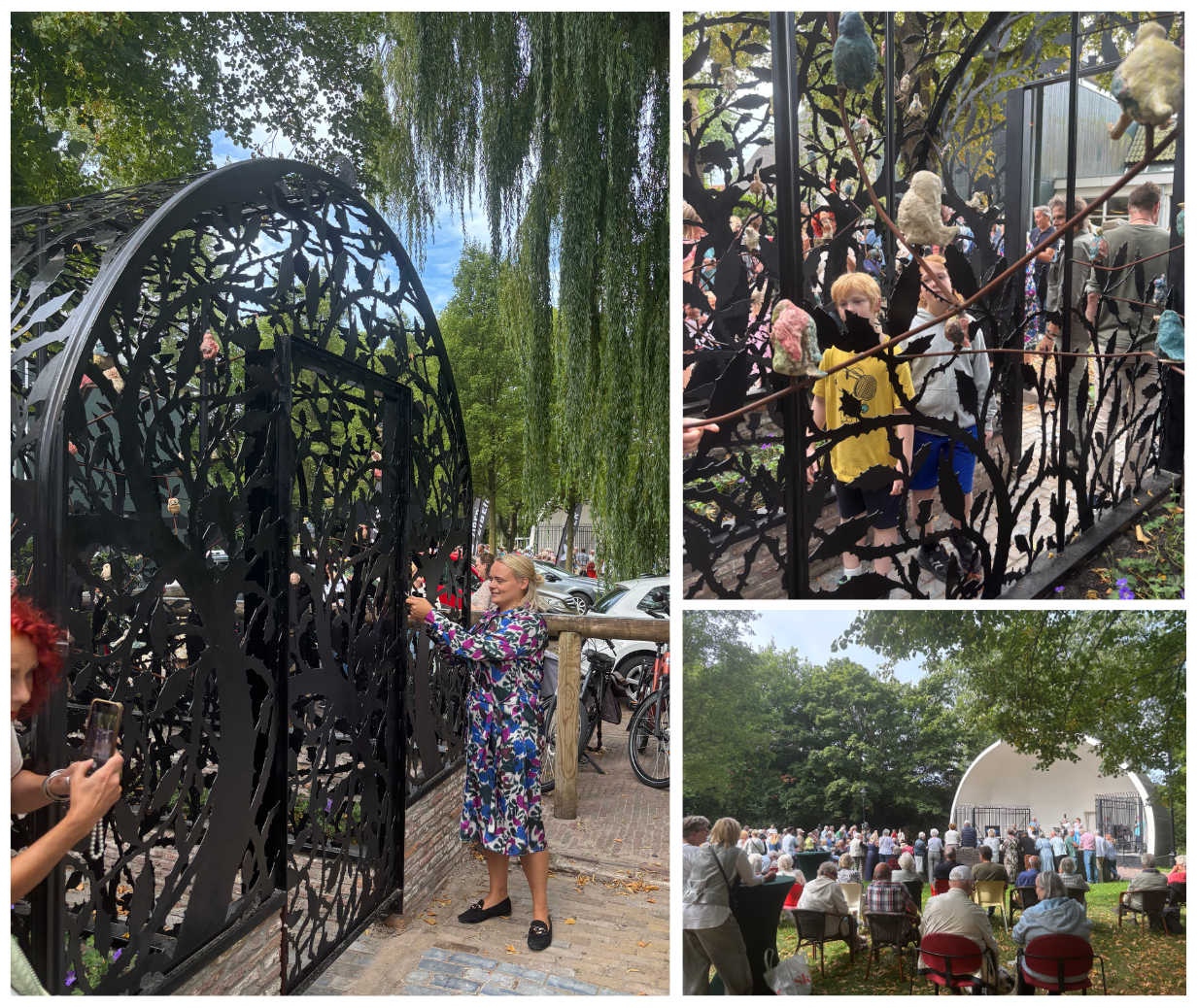 “3 mei 1925, de klanken van Schagens Harmonie klinken voor het eerst in Muziektuin Schagen. Vogels fluiten in de volière. Nu, honderd jaar later, wordt er nog altijd van de muziek van het orkest genoten in de tuin. Om honderd jaar muziektuin te vieren heeft beeldend kunstenaar Rutger Jan Bredewold een volière gemaakt met daarin 100 keramische vogels, gemaakt door leerlingen van de basisscholen in Schagen.”